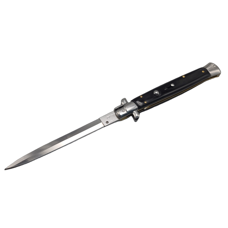 The automatic Italian stiletto knife has a great vintage look that will be appreciated by knife collectors and a solid blade that will get the job done. Using the stainless steel blade is quick and easy when you press the button on the handle. The handle scale is completed with polished stainless steel bolsters. The overall 13″ stiletto knife can be stored in the included nylon pouch.