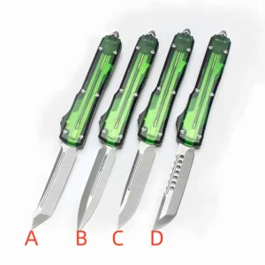 OTF-Messer mit grünem, durchscheinendem Griff